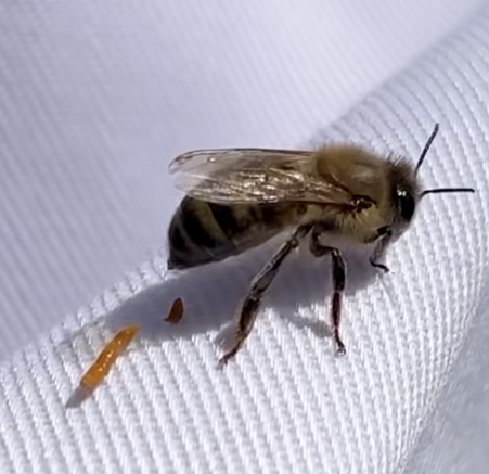 Bees urine, on the other hand, is a different story. Bees do not urinate in the same way as humans. Uric acid which is the primary constituent of bee urine and is the bee’s main nitrogenous waste product is a liquid waste formed in the bees malpighian tubules – similar to our kidneys. The liquid formed is released with the solid waste through their anus.